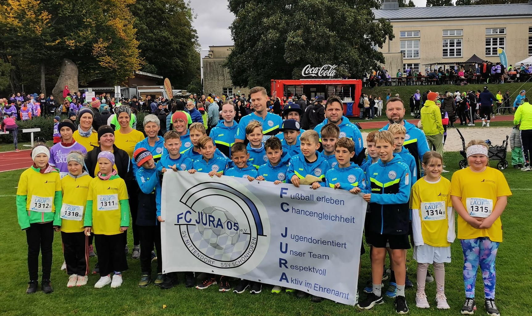 Neu im Vergleich zu den letzten Jahren war allerdings, dass erstmals der FC Jura 05 an den Start ging. Gemeinsam mit seinem Hauptpartner, der Fa. Elektrotechnik Wolfseher & Schmid GmbH, schickte man insgesamt 30 Läuferinnen und Läufer ins Rennen, darunter 21 Kinder- und Jugendliche.