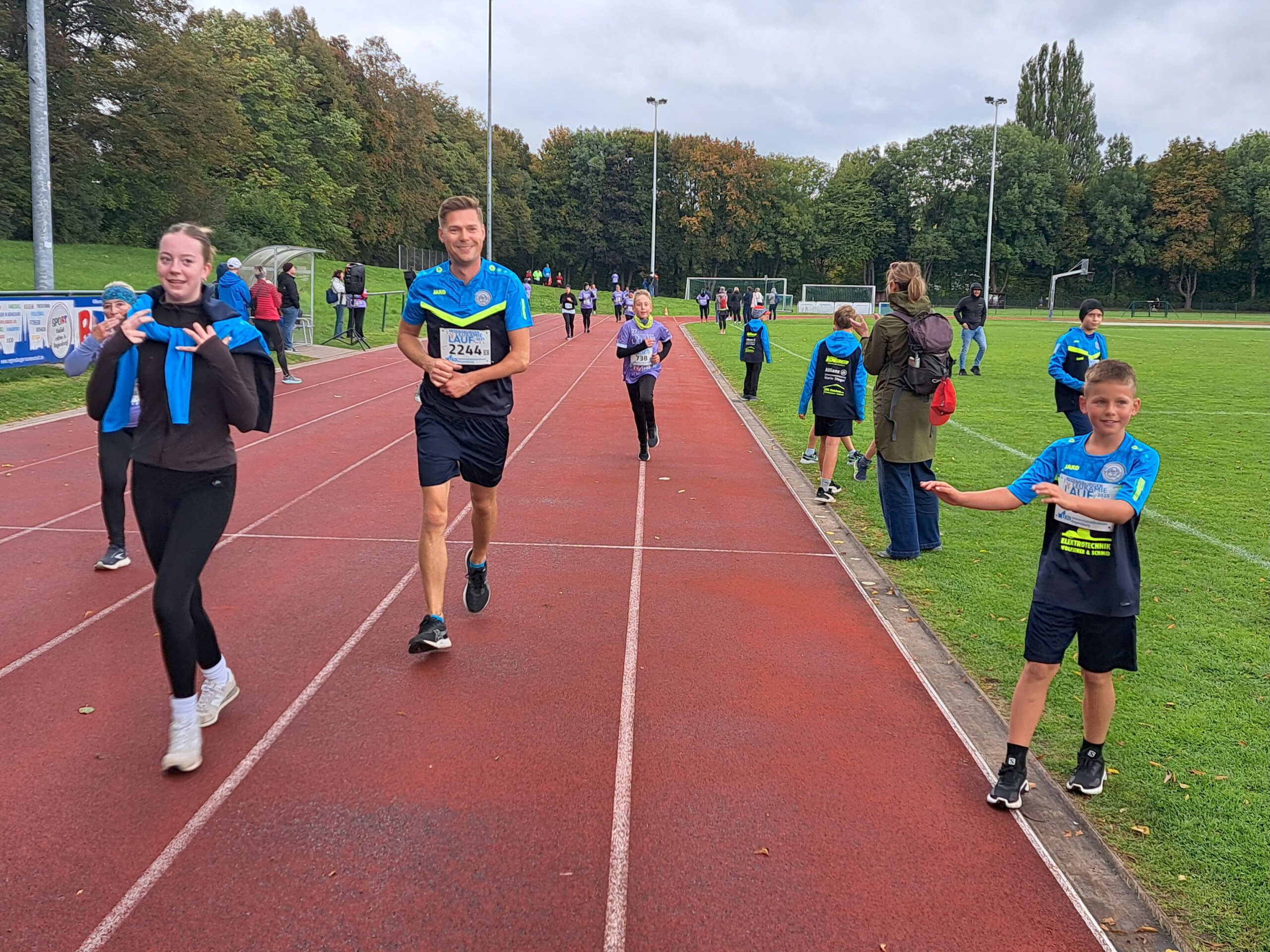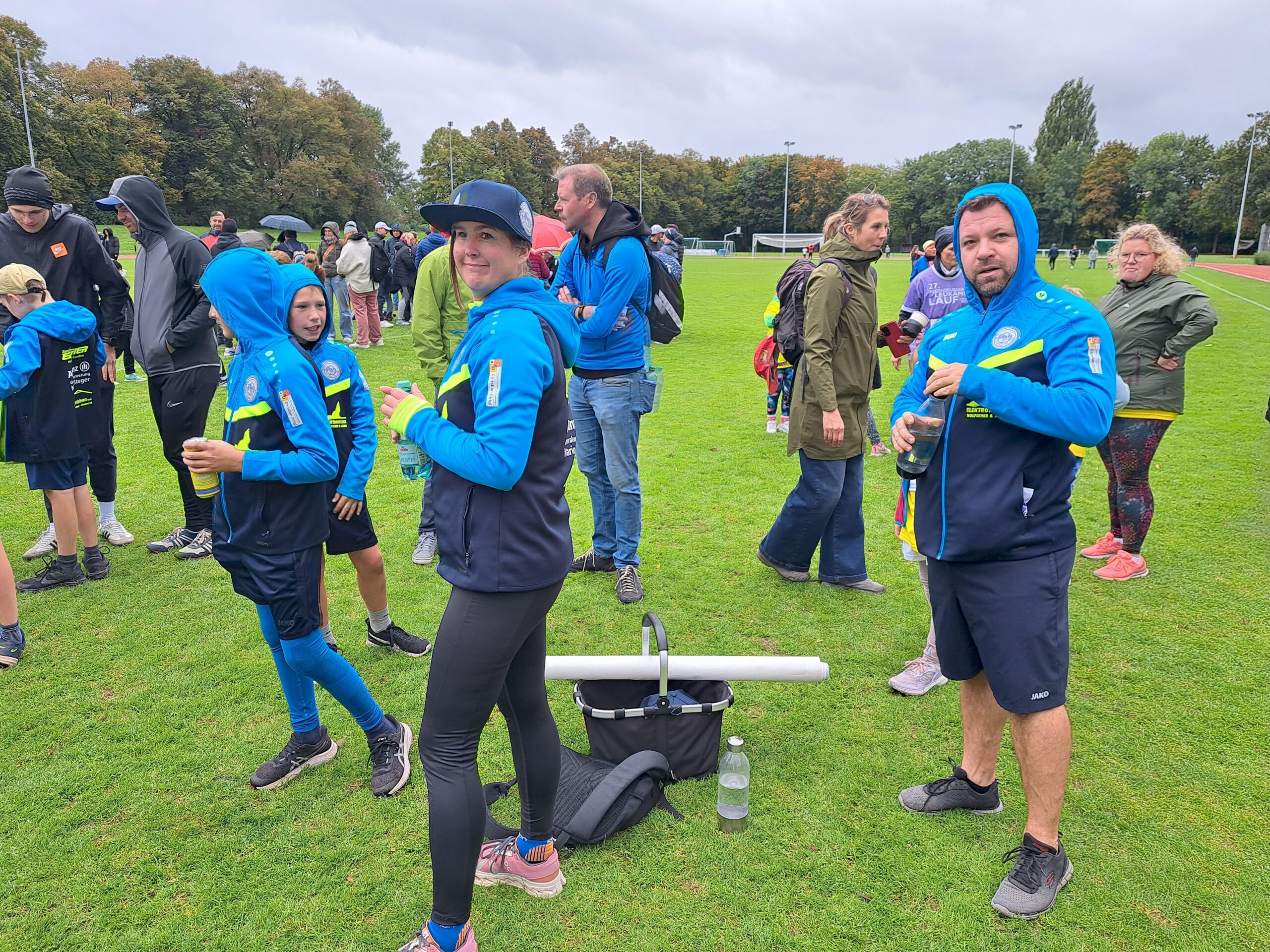 Nach einem kurzen Aufwärmprogramm startete pünktlich um 13.00 Uhr unter dem Jubel und den Anfeuerungsrufen der mitgereisten Eltern und Zuschauer der 5-Kilometer-Lauf. Obwohl immer wieder dunkle Regenwolken am Himmel aufzogen, hielt das Wetter bis zum Zieleinlauf.